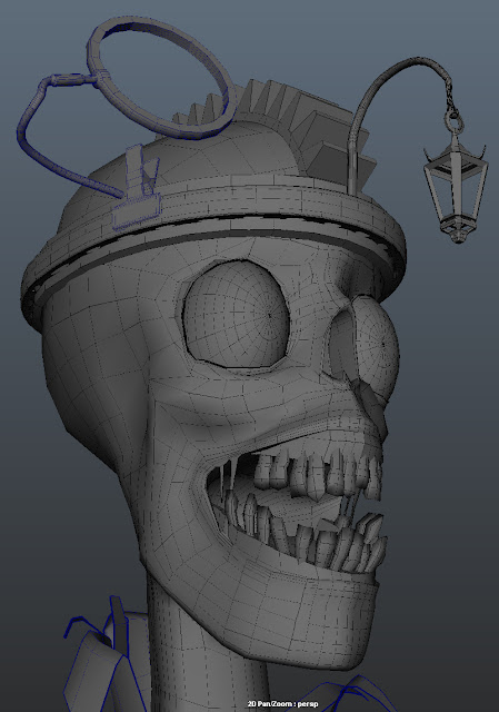 I also spent time tonight creating some of the laces that run down the middle of his shirt, and across the tears on his arms.